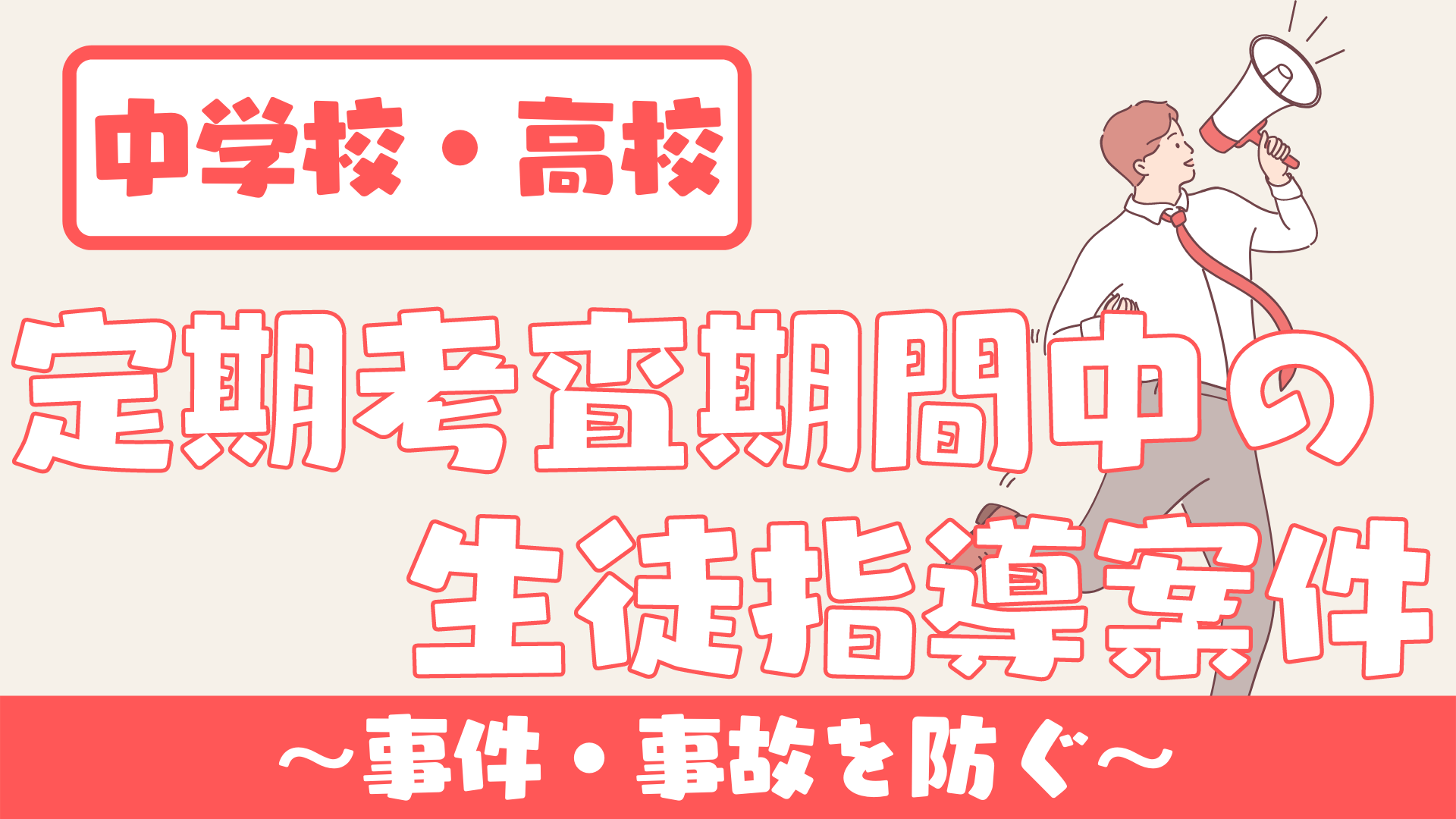 今日は「【中学校・高校】定期試験期間中に起こりそうな生徒指導案件 〜事件・事故〜」をお伝えします。
