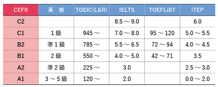 CEFRなんぞ??という人のために試験とCEFRの対照表貼っておきますね!!!