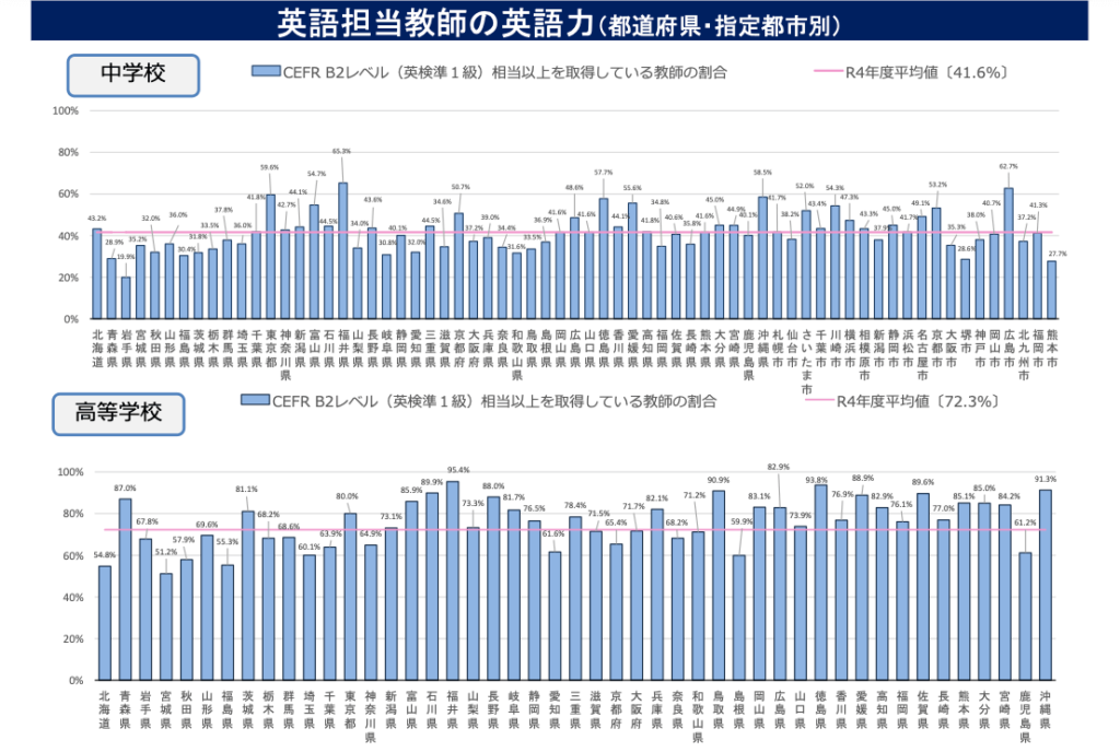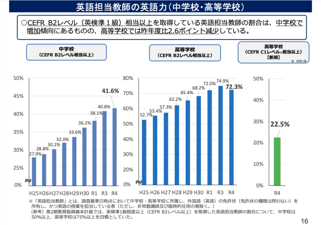 ご覧のように、2枚の画像では英語科教員のリアルなCEFR(セファール)レベルがわかります。